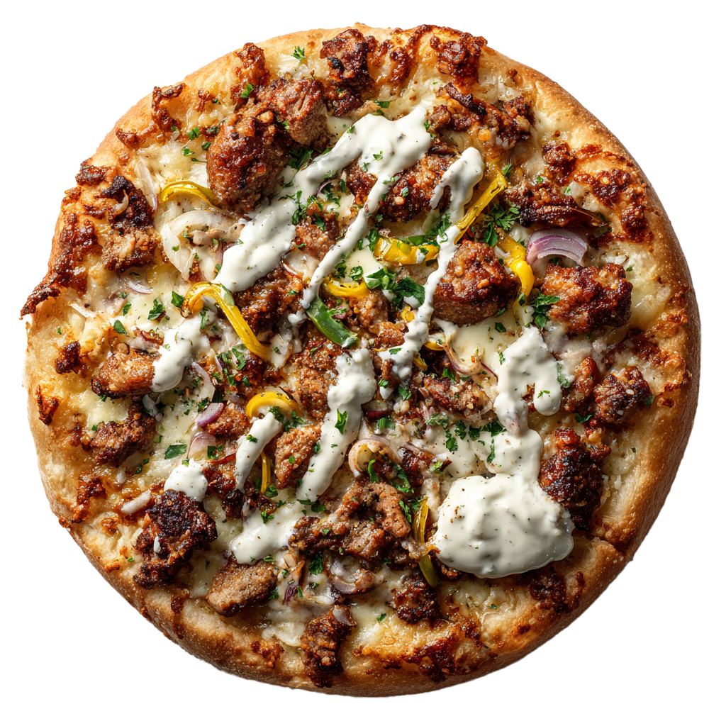 13,00 / 16,00 €Crème fraîche, viande kebab, oignons, poivrons, mozzarella, sauce kebab