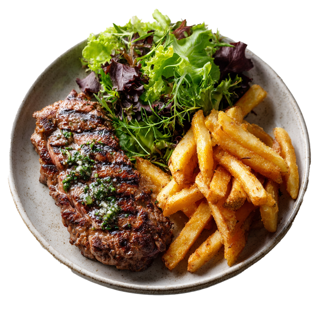17,00 €pièce de bœuf grillée, frites croustillantes, salade fraîche
