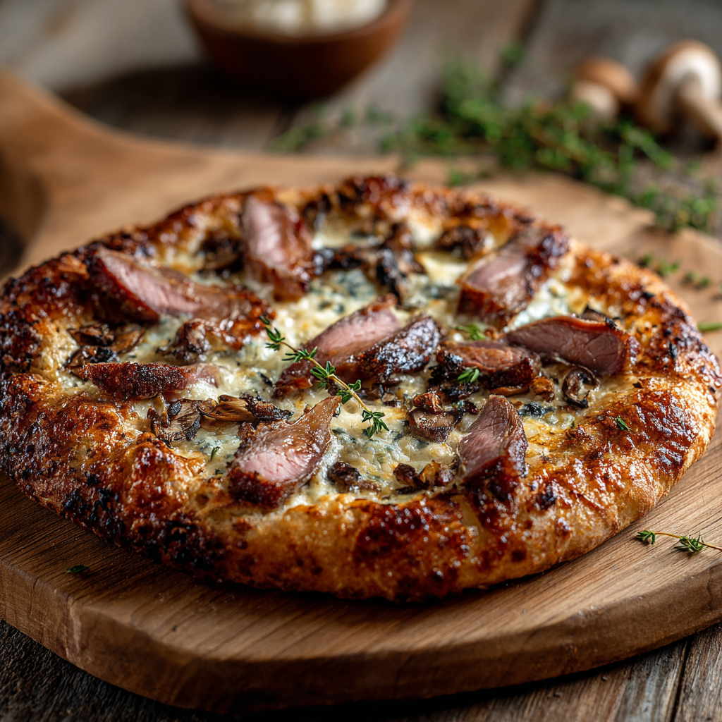 19,00 / 22,00 €Crème fraîche, champignons, pomme de terre, cèpes, magret frais, mozzarella, bloc de foie gras
